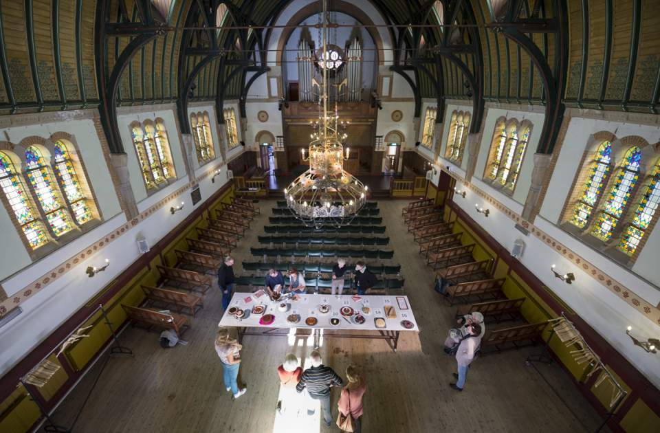 Monumental church in the heart of Weesp. FREE PARKING, 235 m² of authentic wooden floor.